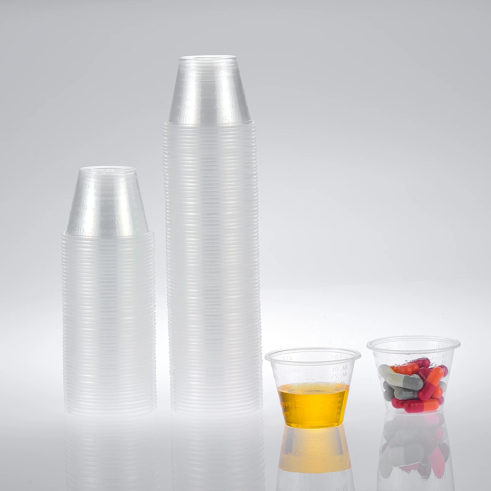 Xincheng offers variety kinds of clear drinking cups, color cups, medicine cups, dental cups, portion cups, etc. We also provide custom printing in various sizes for all your needs.